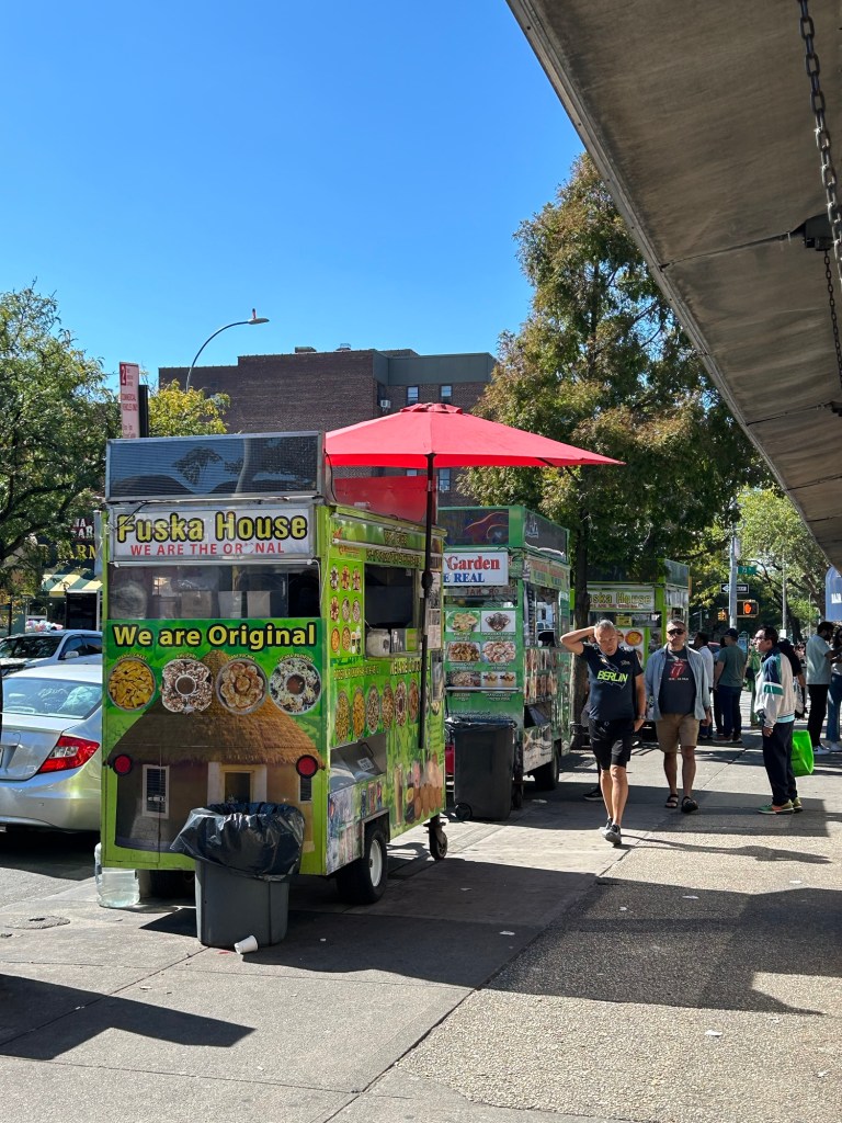 The temperature of New York City was just on the verge of a sharp drop in early October. I was on my day trip to the city on a Saturday with crisp weather and was shivering in the early morning chill while walking around. My friend Tarek proposed a warming food crawl in the famous Jackson Heights neighborhood of Queens, joined by his partner Jane. I have long heard that Jackson Heights is a beautiful melting pot of cultures, but in my experience heretofore it was only a junction between the NYC subway and LGA transit buses on my way in and out the city. While the idea itself was totally ad-hoc, Tarek, with his usual PhD-level knowledge in navigating crowd-sourced information, quickly executed a list of stops with some handy suggestions from the FoodNYC Subreddit. It consists of three famous food trucks and one dessert shop, all within a few blocks of each other. With a plan settled, we then met around noon time on the 7-train bound to Queens with our stomachs grumbling.